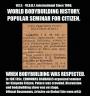 Австралиец ГРЭМ ЛАНСФИЛД (Graeme Lancefield) в организаторском международном спорте лишь несколько лет и он не понимает многих вещей, особенно исторических, о нашем спорте он просто не знает. Основываясь на публикации заведомо лживой информации австралийца ГРЭМА ЛАНСФИЛДА, ряд особ эту информацию распространяют далее.