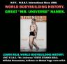 1950 metais žurnalo “Sveikata ir jėga” (“Health and Strength”) redakcija inicijavo nacionalinės kultūrizmo asociacijos N.A.B.B.A. įkūrimą. Pasak buvusio N.A.B.B.A. prezidento AIVANO DANBARO (Ivan Dunbar), N.A.B.B.A. juridiškai buvo registruiota visuomeninio klubo statusu. Tais pačiais 1950 metais N.A.B.B.A. Londone organizavo pirmąjį “Mr. Universe” turnyrą. Absoliučiu turnyro nugalėtoju tapo STIVAS RIVSAS. Toliau Tarptautinio Olimpinio komiteto narė F.I.H., du dešimtmečius oficialiai vadovavusi pasaulio kultūrizmo sportui, tęsė “Mr. Universe” tradicijas, o N.A.B.B.A. “Mr. Universe”, kaip ir brolių DŽO ir BENO VEIDERIŲ (Joe and Ben WEIDER brothers) komercinė I.F.B.B. firma, nuėjo individualiu keliu, tolimu nuo oficialaus pripažinimo.